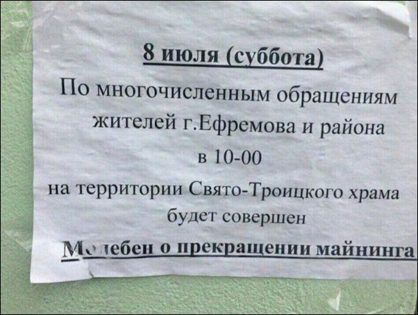 прикинул, как богомольные старушки шумною толпой жалуются батюшке на засилие майнинга