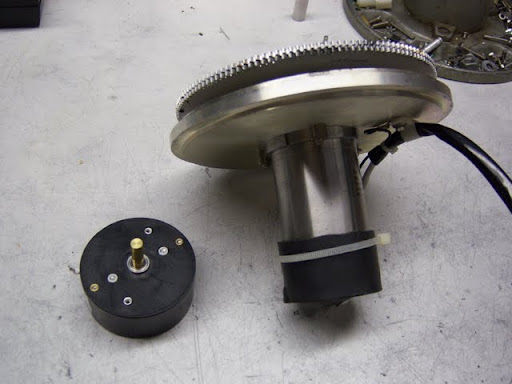 В домашних условиях такой редуктор не построить :(. Усилия для вращения практически нет. Все поворачивается очень легко. Я даже не знаю, зачем такой большой двигатель использовали. Скорее всего, для того, чтобы антенная система была способна следить за быстро движущимися обЪектами.